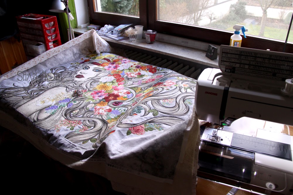 I spent the whole day yestarday on quilting the background (plus several days before on quilting the girl and the flowers). Now it's just binding and the sleeve on the back and I can start working on another one :)